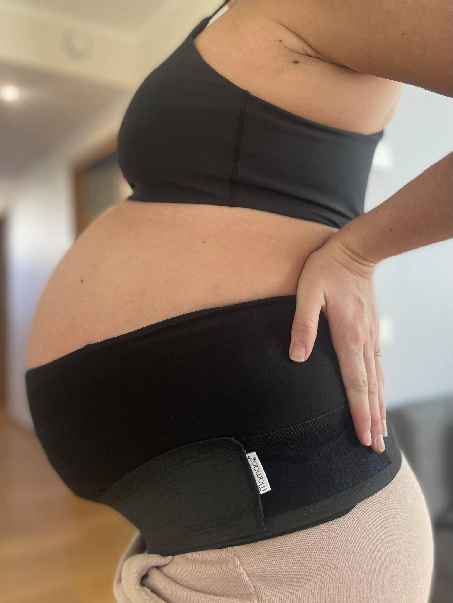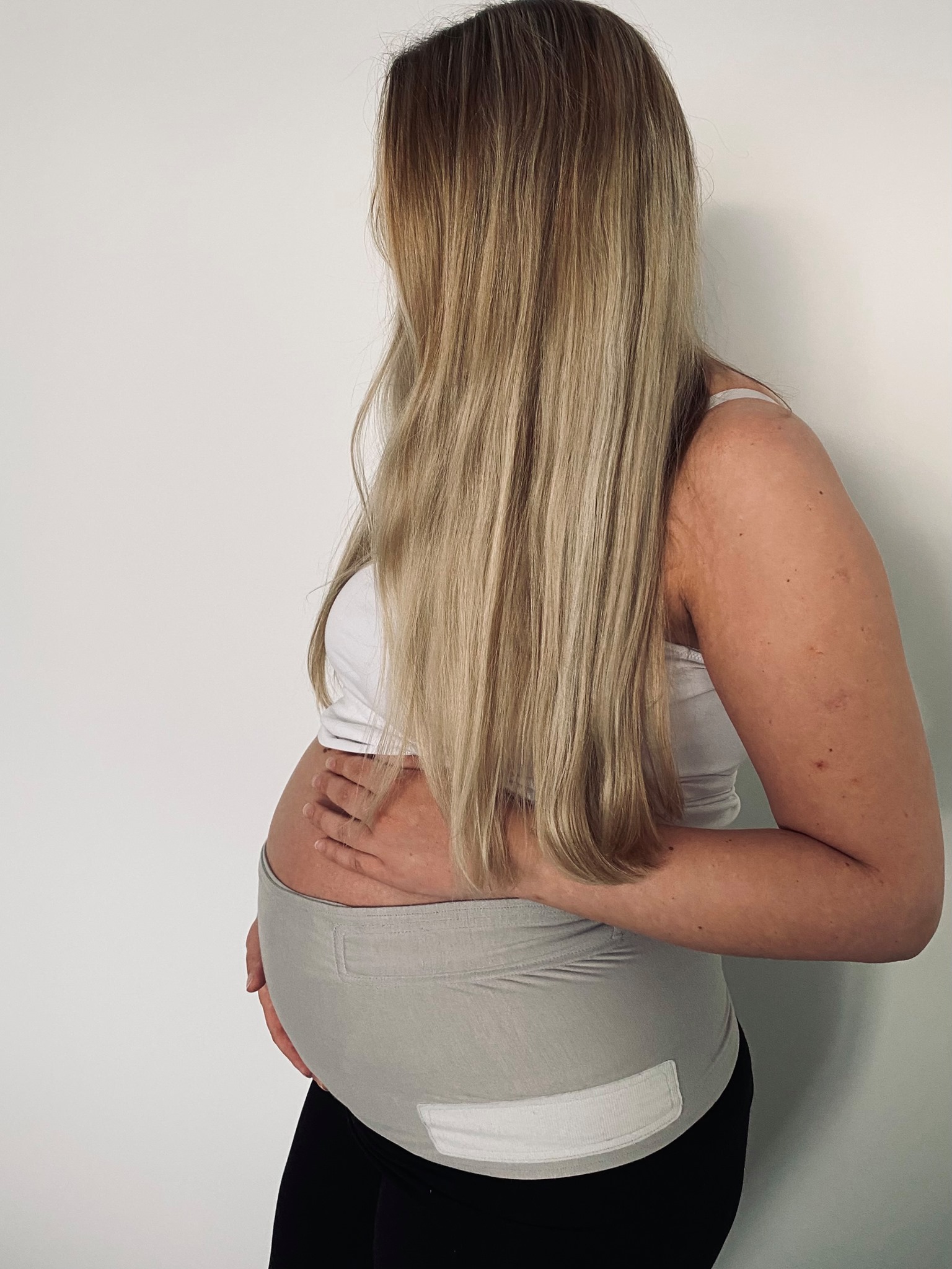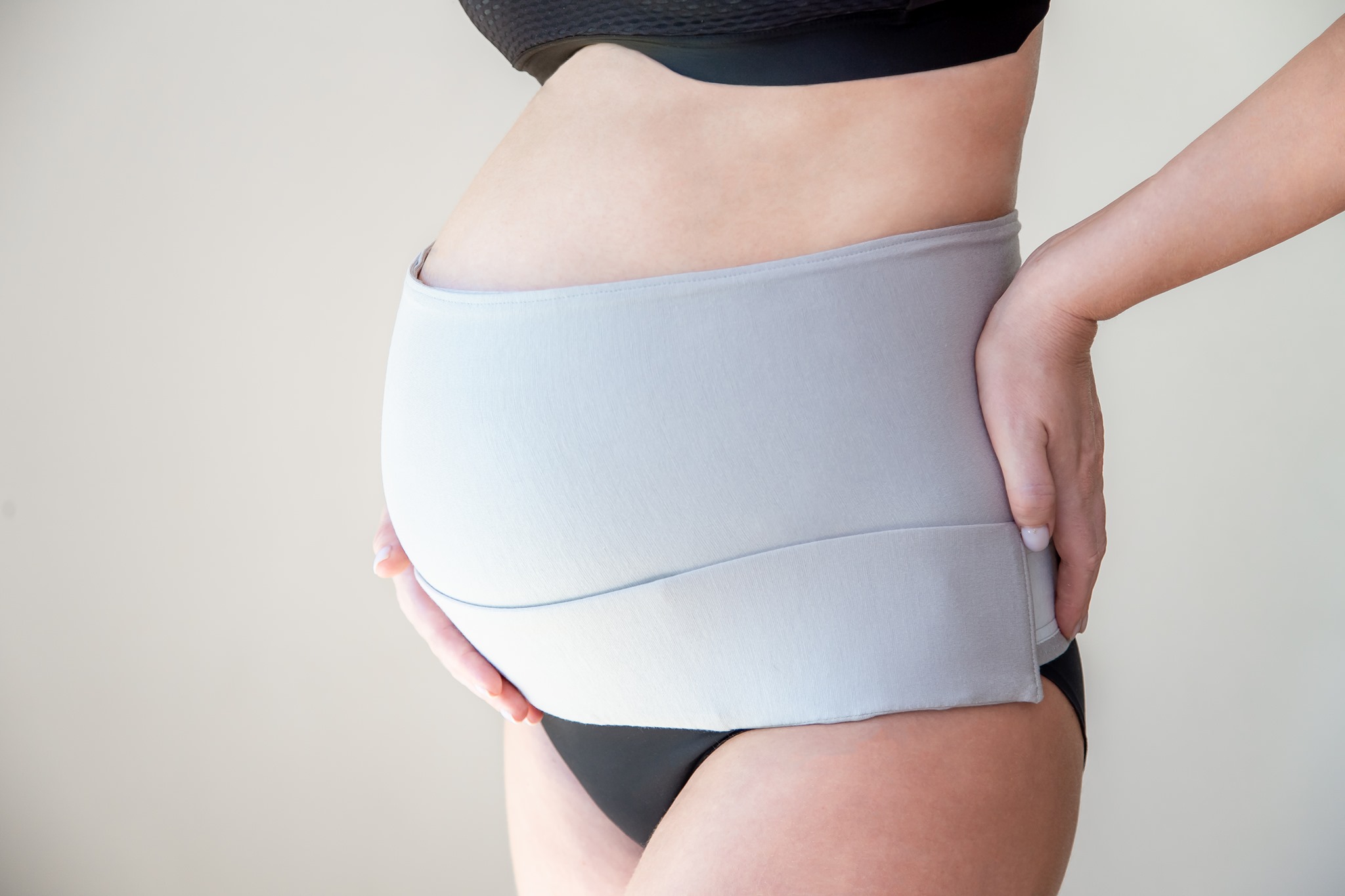 Soft belly wraps, recommended by physiotherapists and obstetricians.